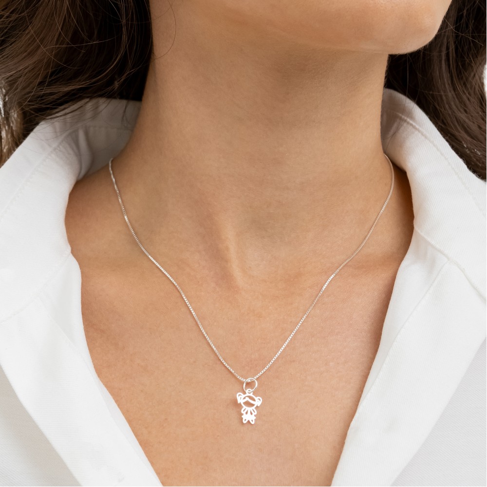 O Pingente de Prata 925 mini Menina Vazada é uma joia delicada e cheia de significado. Com design minimalista, ele representa o amor por uma filha, irmã ou alguém especial.