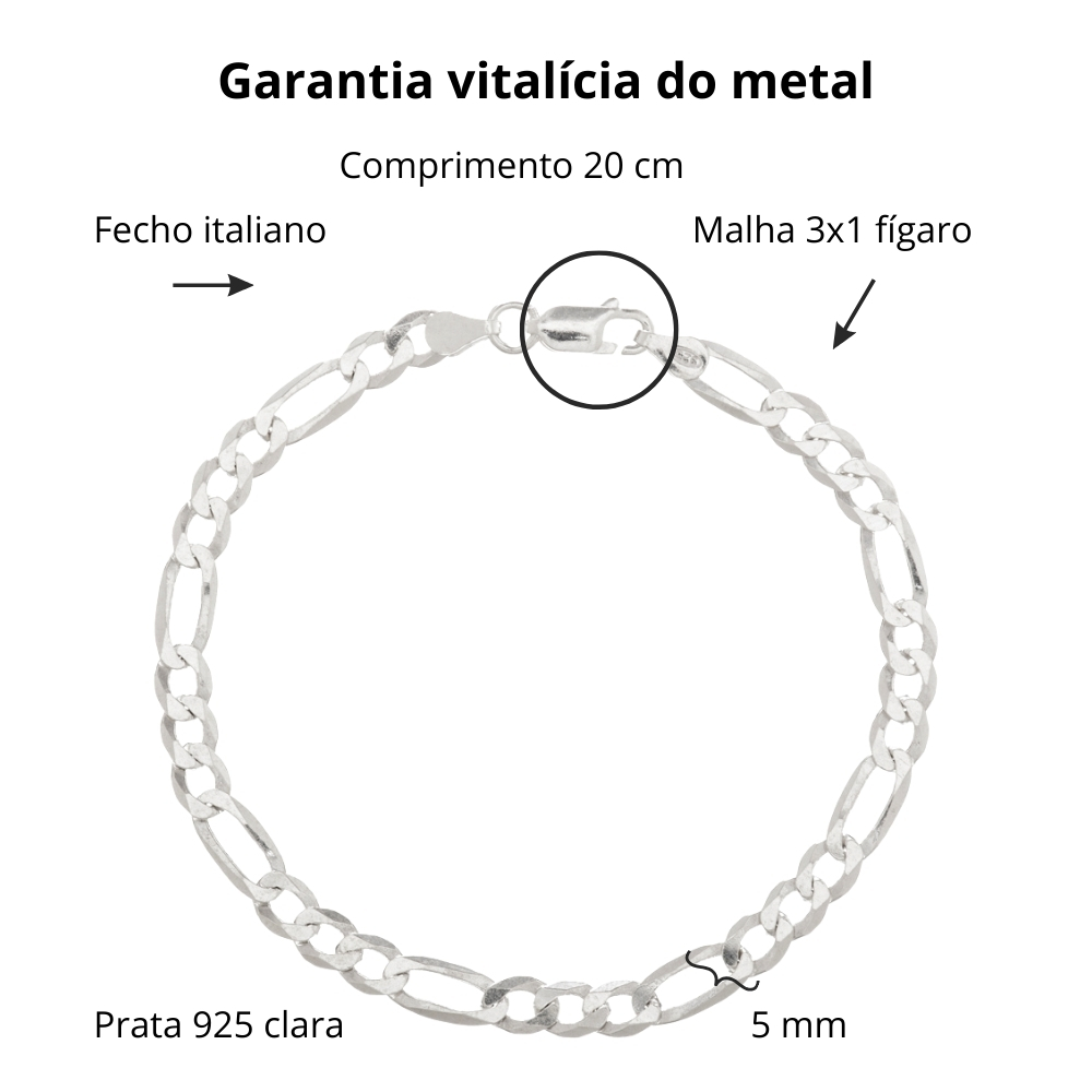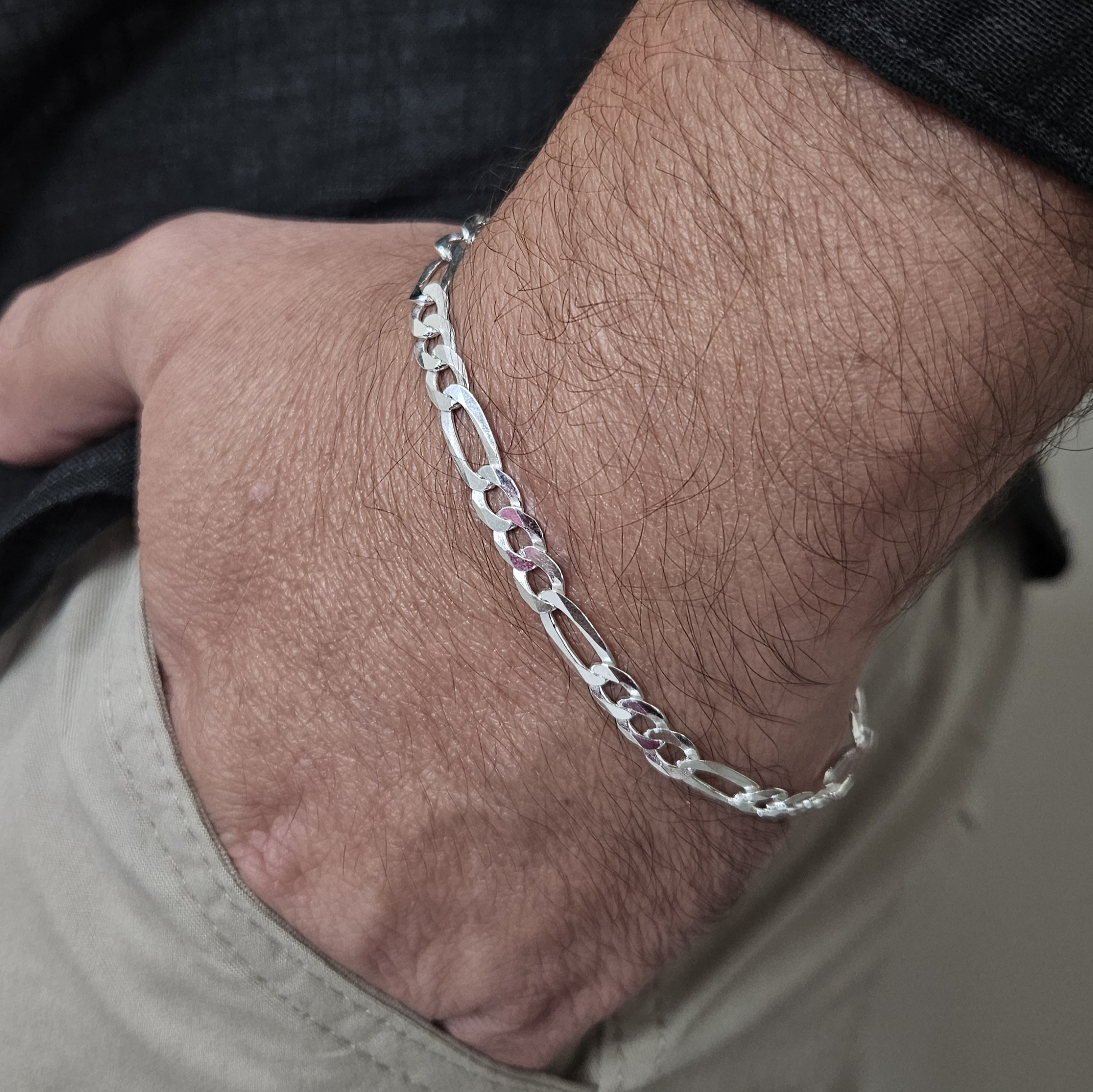 Pulseira de prata 925 masculina 3×1 Fígaro 5mm