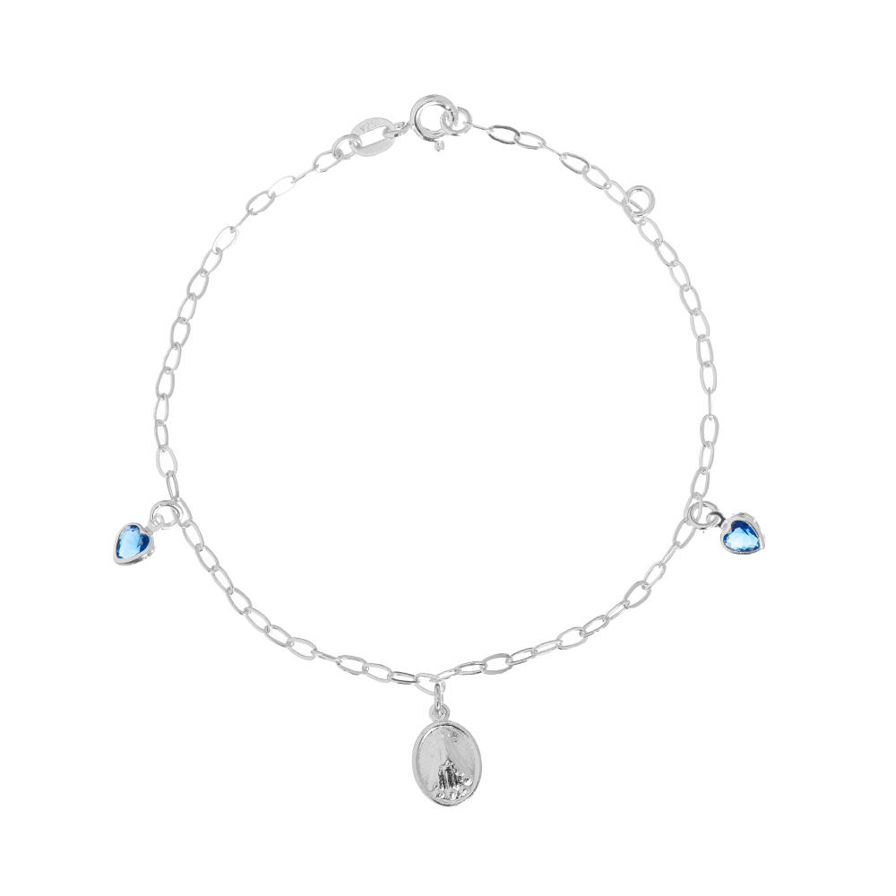 Pulseira de prata 925 Nossa Senhora com pingentes corações azul
