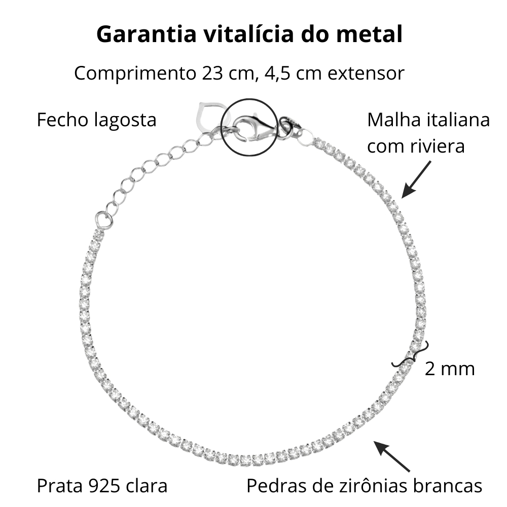 Use a pulseira riviera em Prata 925 com a choker riviera zircônias brancas e brilhe com essa combinação!