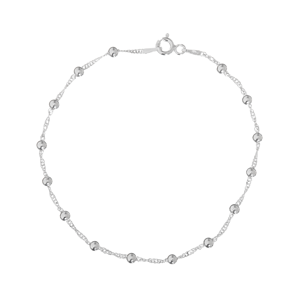 A Pulseira de Prata 925 Singapura com Bolinhas é puro charme e delicadeza. Seu design combina a malha singapura fina, conhecida pelo brilho elegante, com bolinhas lisas distribuídas por toda a extensão, criando um visual moderno e versátil. Uma peça coringa para usar sozinha ou em combinações cheias de estilo.