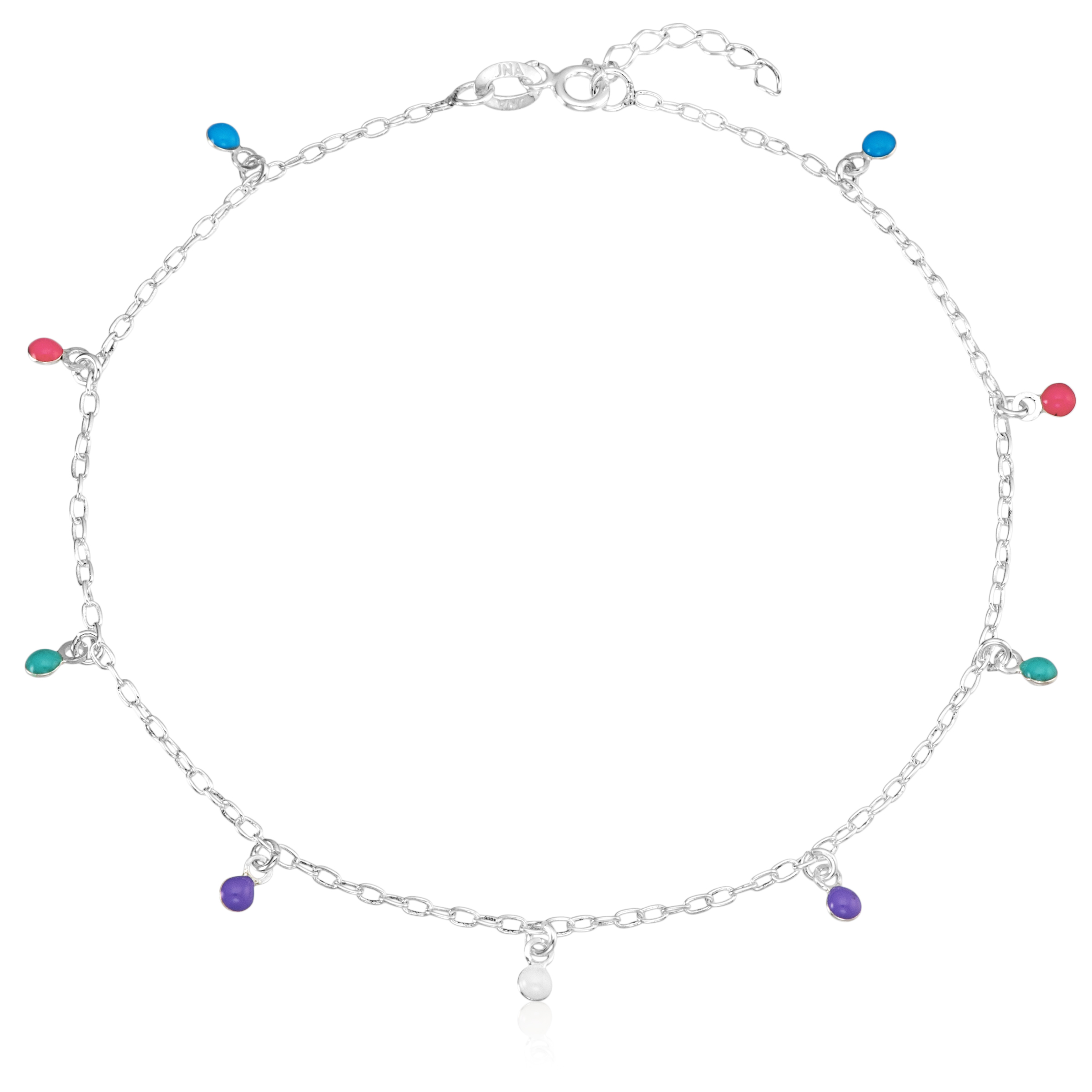 Tornozeleira de prata 925 bolinhas coloridas penduradas