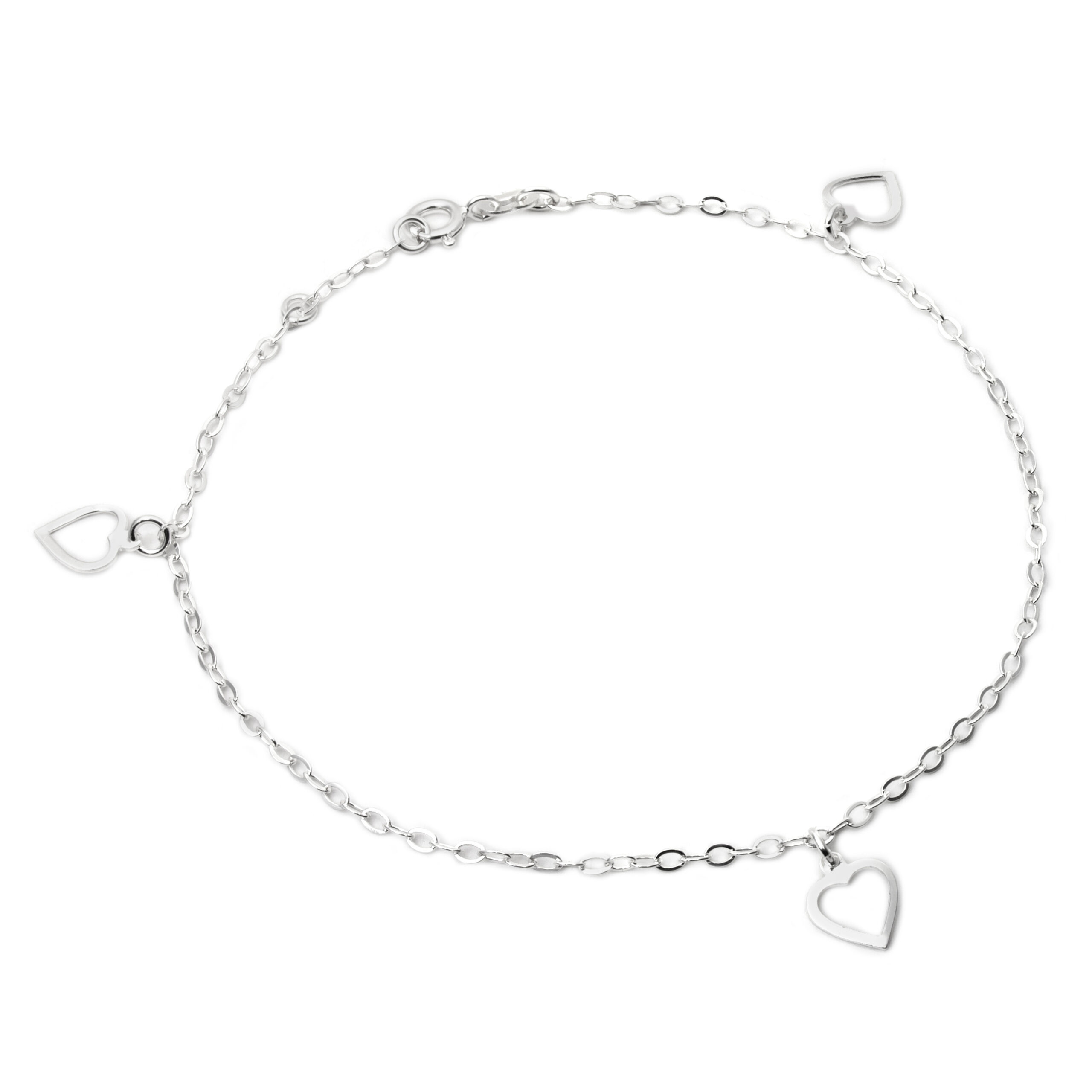 Além disso a tornozeleira de prata pingentes corações é perfeita para quem gosta das tendências de acessórios delicados e minimalista.