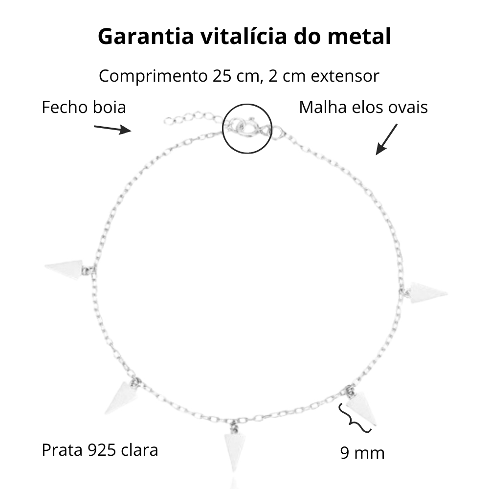 Tornozeleira de prata 925 pingentes triângulos lisos