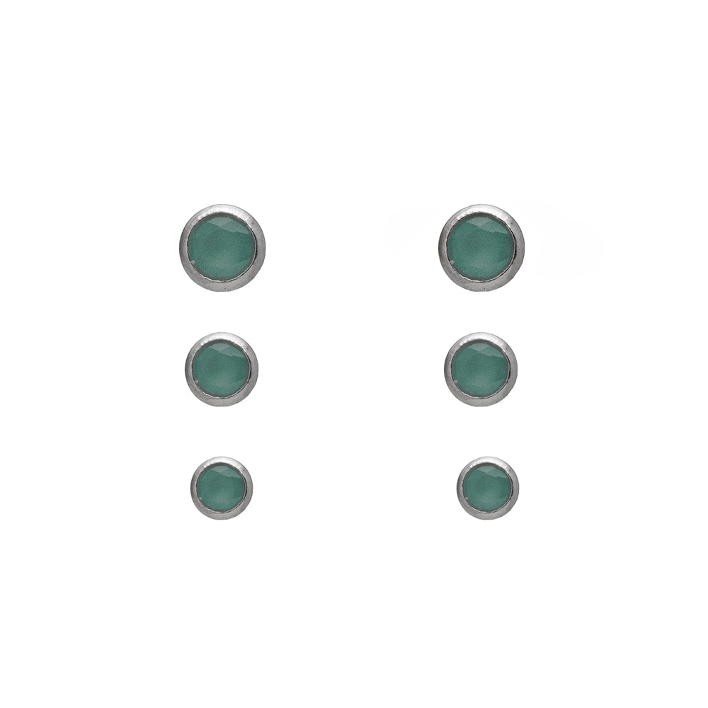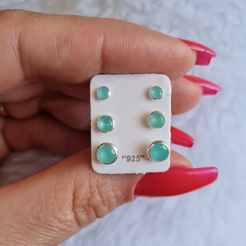 Trio de brincos em prata 925 zircônia embutida azul leitoso